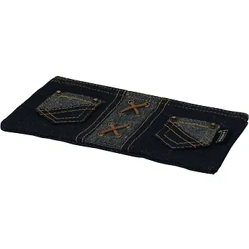 Пенал-косметичка плоский 21*10.5*0.5см джинсовый, темно-синий, 2 кармана, шнуровка, Proff
