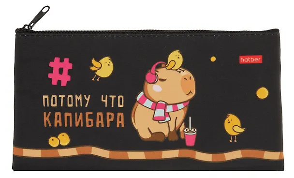 Пенал-косметичка очень удобный. Покупала 2 шт. один себе, второй дочке. Я ношу в сумочке, как косметичку, дочка использует, как пенал для канцелярских принадлежностей. Компактный, помещается в сумочке дамской. Очень нравится материал, исполнение, красивый и забавный рисунок милой зверюшки капибары. Приятный и эргономичный в использовании. Не маркий. Рекомендую к покупке.