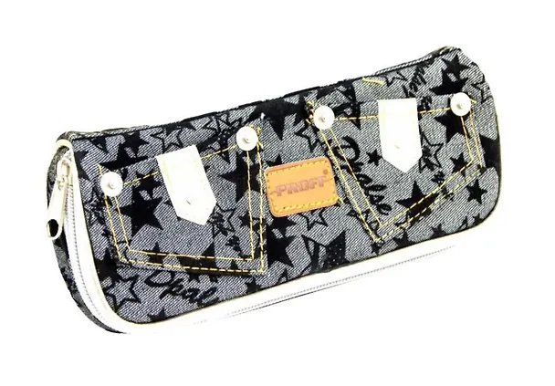 Пенал-косметичка прямоугольный 1отд. 21*9,5*4см ткань "джинс", 2 накладных кармана, мет. фурнитура, черно-серый с рисунком "звезды", PROFF
