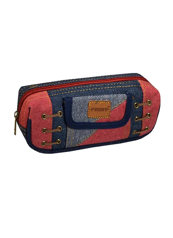 Пенал-косметичка прямоугольный 21,5*9,5*4см, полиэстер, декоративная нить, накладной карман, мет. фурнитура, темно-синий с красный, Proff