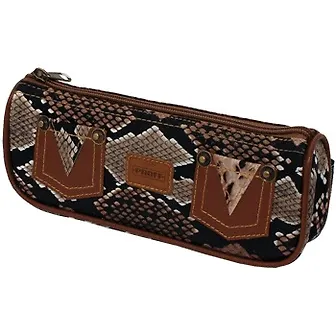 Пенал-косметичка прямоугольный 21*7*4см искусственная кожа "питон черно-серый",2 кармана, Proff