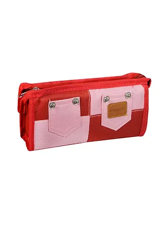 Пенал-косметичка прямоугольный 21*9*4см, полиэстер, текстильная окантовка, вставки из контрастного материала, 2 накладных кармана, красно-розовый, Proff