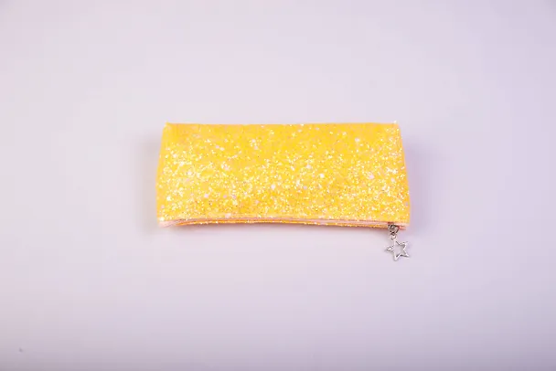 Пенал-косметичка (с блестками, на молнии, лимонный)