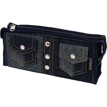 Пенал-косметичка треугольный 21*9*4см джинсовый, темно-синий, 2 кармана, метал.заклепки, Proff