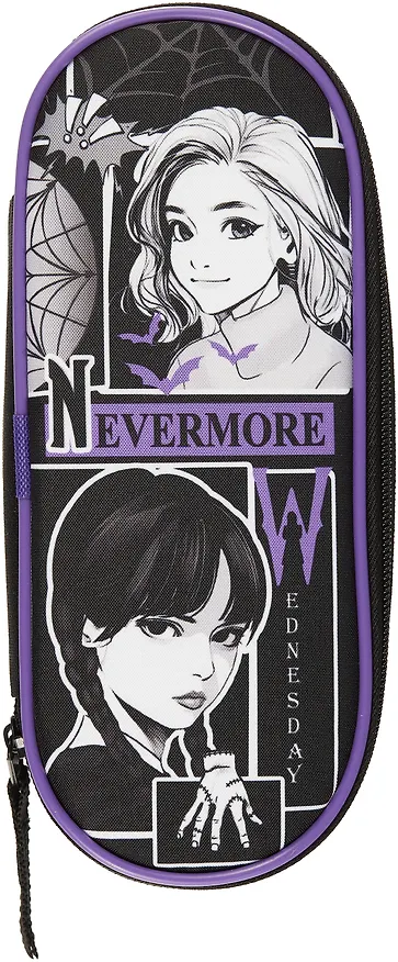 Классный пенал в принципе, а для поклонников Уэнсдей в особенности. Дизайн изумительный: готично, в меру мрачно, сама Уэнсдей узнаваема, и даже Руку не забыли! Пенал достаточно вместительный (благодаря своей толщине), есть удобные резинки для ручек с одной стороны; хорошее качество (молния работает без нареканий, аккуратно прошит, нитки не торчат).