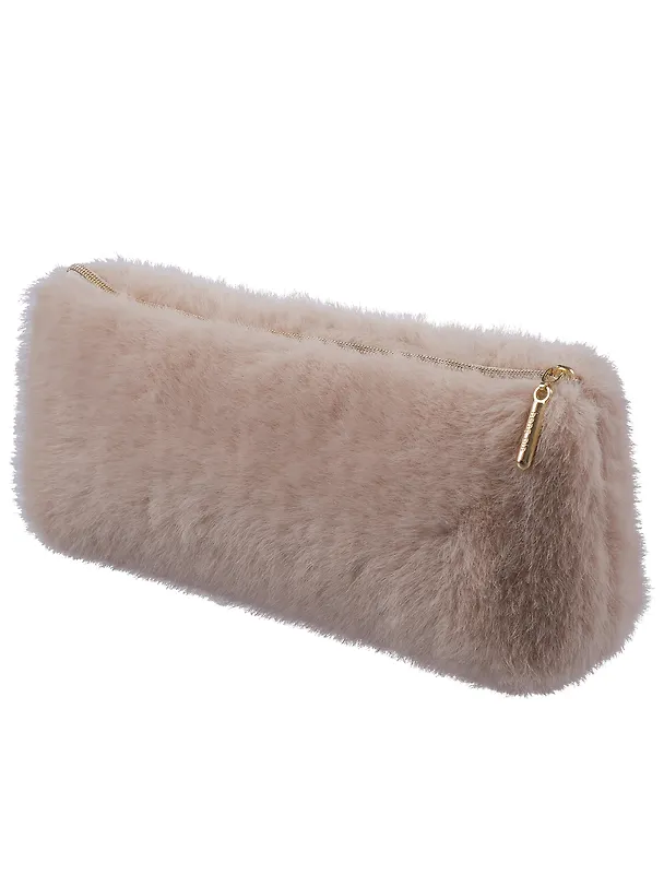 Пенал-косметичка из искусственного меха на молнии, с подкладкой, треугольной формы, бежевый, Yoi