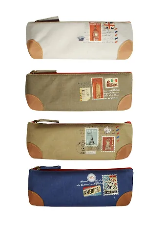 Пенал на молнии Марки с городами (ткань) (19х7)