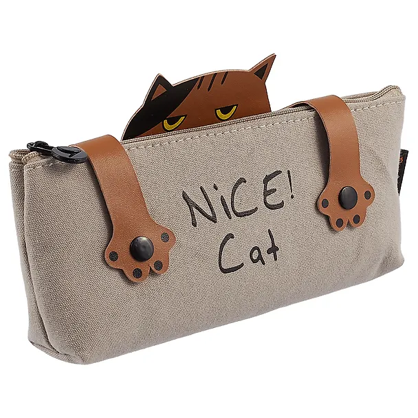 Посмотрите, как этот котик старается держать пенал закрытым! Он обхватил его обеими лапками и смотрит, чтобы из него ничего не пропало. Вы можете доверить ему все свои ручки, карандаши и фломастеры. Обязательно похвалите котёнка и почешите за ушком.