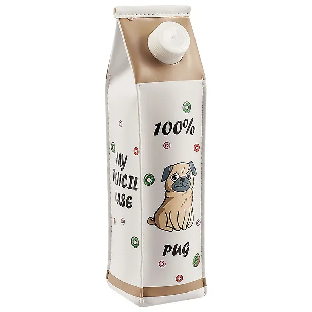 Пенал на молнии Пакет молока Мопс (6х20) (кожзам) (ПВХ бокс)