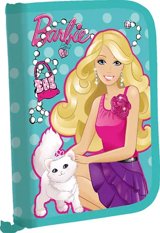 Пенал школьный 1 отделение. "Barbie" 20,5*14*3,5см, ламинированный, клапан, крепление для канцелярских принадлежностей, голубой, Barbie