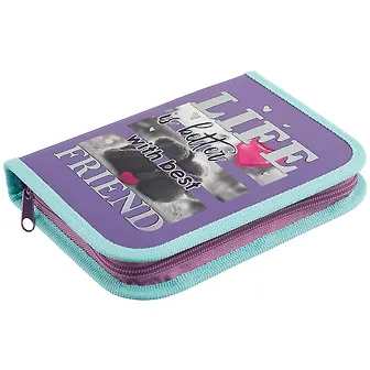 Пенал школьный 1отд. "Лучшие друзья" 19*13см, откидн.планка, 3D фольга