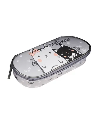 Пенал школьный 1отд. "Лучшие друзья" полиэстер, мягкий с откидным клапаном, Оникс