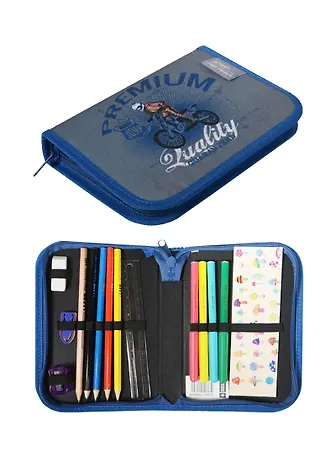 Пенал школьный 1отд. "Мотоциклист" с наполнением (16 предметов), ткань, ACTION