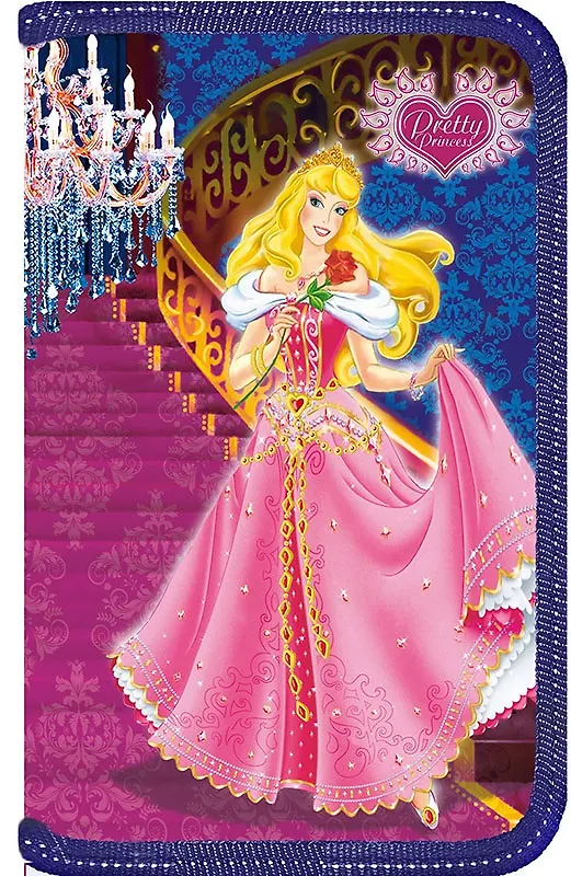 Пенал с изображением принцесс, Произведен из ламината с блестками, 1 отделение, Объемное тиснение, Производство: Россия.