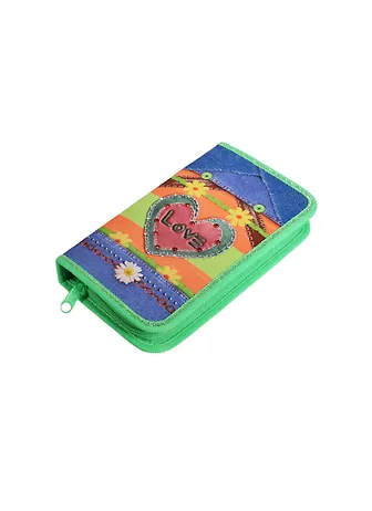 Пенал школьный 1 отделение "Сердце на джинсе" 19*11 см, ткань, стразы, Оникс