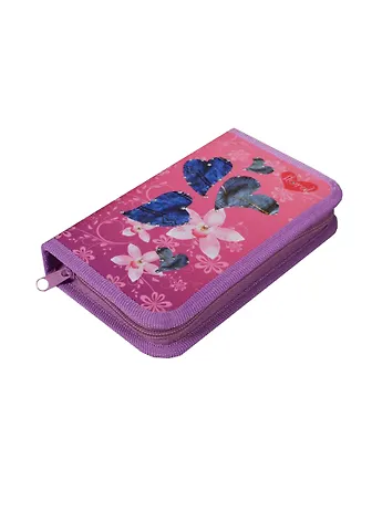 Пенал школьный 1отд. "Сердечки джинс" 19*11см, ткань, стразы, Оникс