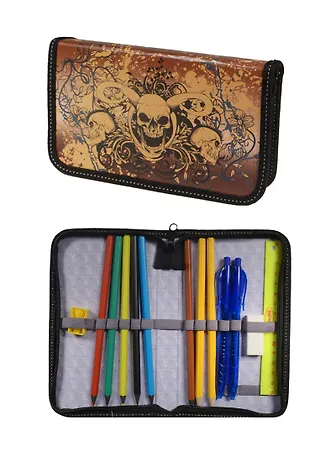 Пенал школьный 1отд. "Skulls" с наполнением (13 предметов), ламинированный, Check Yo Head