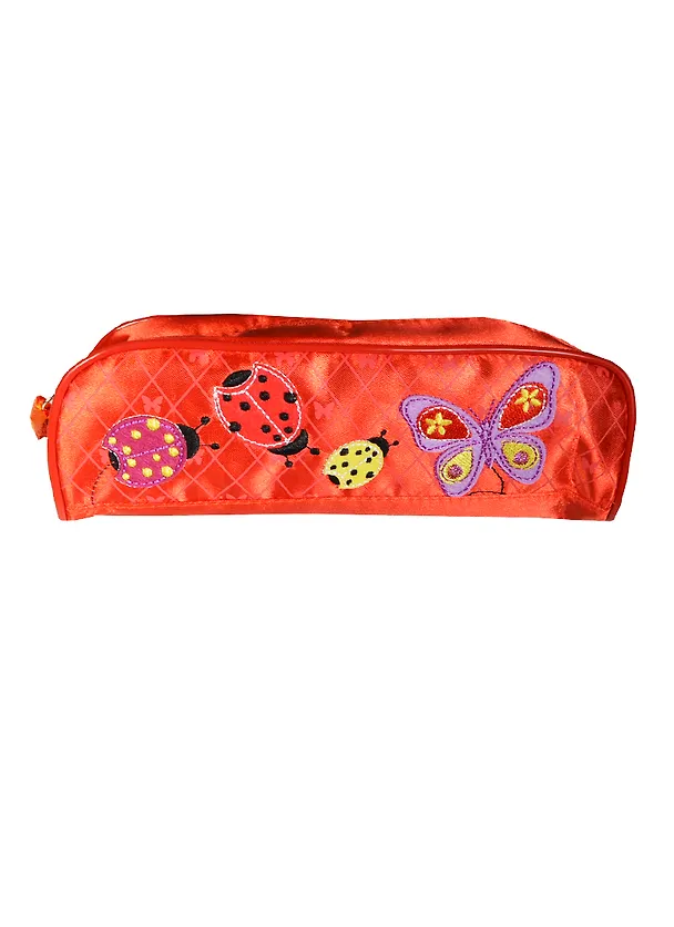 Пенал школьный 1отд. "ЯРКАЯ БАБОЧКА" 21*5*6,5см, атлас, печать по ткани, аппликация, вышивка, фигурная собачка, Феникс