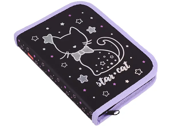 Пенал школьный 1отд. "Звездный котик" 19*13см, 3D лак