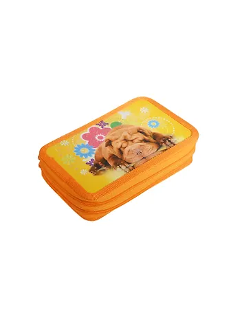 Пенал школьный 2 отд. "Щенок шарпея" 19*11, ткань, глиттер, Оникс