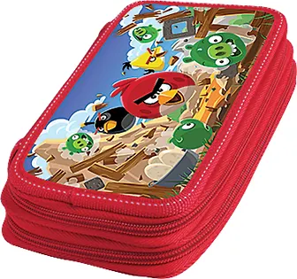 Пенал школьный 2отд. "ANGRY BIRDS" 19*11,5*4,5см, прямоугольный, c наполнением (25 предметов), голубой, Angry birds
