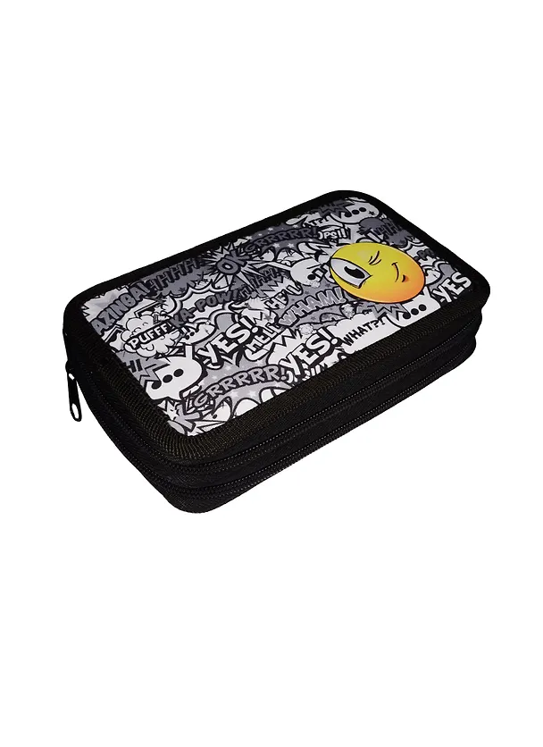 Пенал школьный 2 отделения "Смайлик" 19*11см, ткани, Оникс
