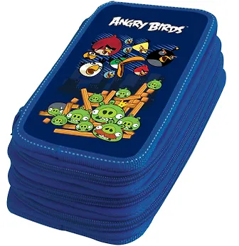 Пенал школьный 3отд. "ANGRY BIRDS" 19*11,5*6,5см, прямоугольный, c наполнением (32 предметов), голубой, Angry birds