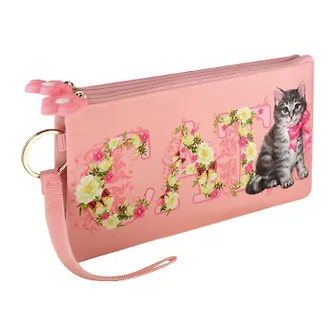 Пенал школьный арт.39387/48 КОШЕЧКА И ЦВЕТЫ (без наполнения, 20х10.5см, атлас, застеж.-молния, фигурная собачка)