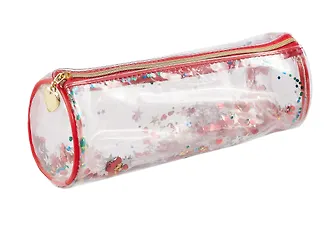 Пенал школьный арт.46424/25 КРАСНЫЙ (без наполнения, 22х6.5х6.5 см, одно отделение, ПВХ с ПВХ-пайетками, металлическая "собачка" в форме сердца, металлическая молния, молния, пэт-пакет)