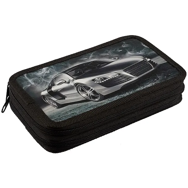 Пенал школьный 2отд. "Silver car" 19*11, молния, лам.картон, Оникс