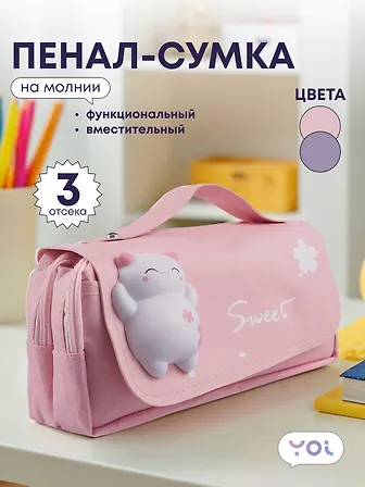 Прекрасный пенал-сумка, покупала младшей сестренке под цветные карандаши и фломастеры, используемые ей на уроках ИЗО. Данный пенал идеально подошел для их хранения, так как сделан с двумя раздельными отделениями. Свой выбор я остановила на данном пенале, потому что он понравился мне своим оригинальным и очень милым дизайном, с такой прикольной игрушечкой. Он отличного качества, хорошо сшит, надежен в использовании - с прочными молниями. Сестренка в востроге от пенала, пользуется им с удовольствием. В рюкзаке места много особо не занимает. Рекомендую!