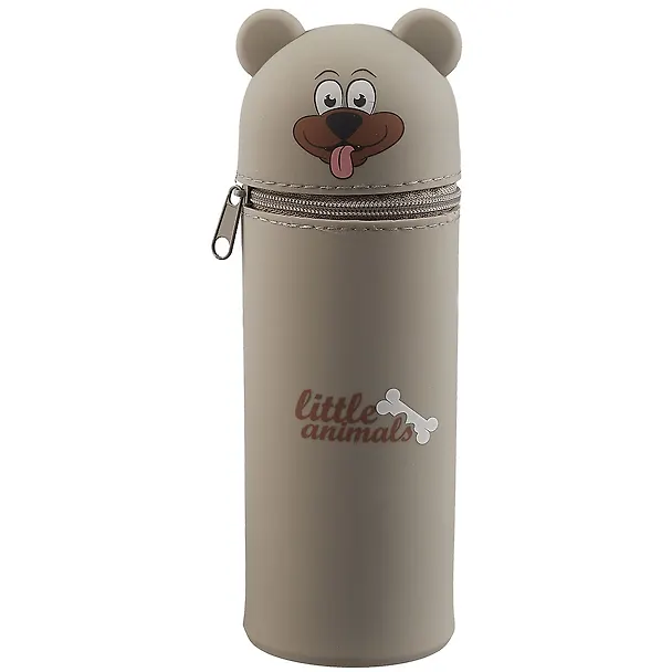 Пенал школьный арт.48498/25 СОБАКА (без наполнения, 6х18х6, одно отделение, силиконовый полимер, коричневый , молния, шелкография, ПЭТ-пакет)