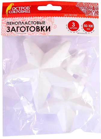 Пенопластовые заготовки Звездочки (5-100 мм) (3 шт) (3+) (661369) (упаковка) (Остров сокровищ)