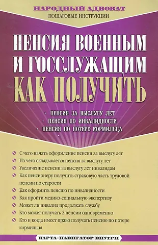С помощью пошаговых инструкций, содержащихся в пособии, вы узнаете все о пенсиях за выслугу лет, по инвалидности и потере кормильца. С чего начать оформление пенсии за выслугу лет; из чего она складывается; как увеличивается пенсия за выслугу лет инвалидам - обо всем этом и многом другом расскажет эта книга.