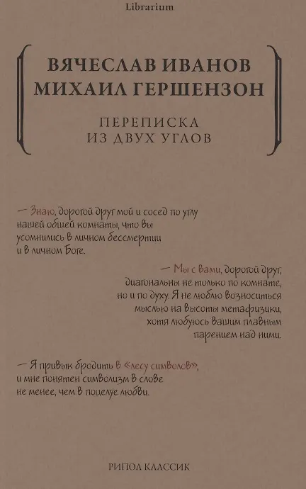 Летом 1920 года Вячеслав Иванов, истощенный голодными годами и болезнью жены, получает путевку в «здравницу для переутомленных работников умственного труда». Абсолютно случайно его заселяют в комнату к дорогому другу — Михаилу Гершензону, переводчику (совместно перевели Петрарку), литературоведу и мыслителю. Так и возник новый жанр — переписка между двумя соседями по комнате, что размышляют о революции, символизме, философии, о прошлом и будущем. В сборник вошли мемуары Ходасевича, Кузмина, Белого и других о Гершензоне и Иванове, их дружбе, первом издании и лете 1920 года.