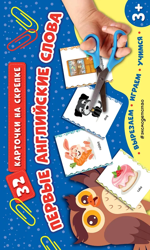 Необычное пособие для дошкольников поможет ребёнку от 3 лет сделать первые шаги в изучении английского языка. При помощи ножниц книга превращается в комплект из 32 двусторонних обучающих карточек. Перемешайте их и предложите дошкольнику самостоятельно выбрать какую-то одну. Ребёнок называет картинку на русском языке и видит её английское название, а взрослый читает английское слово и его перевод. Так, в форме игры, дошкольник запомнит первые английские слова, которыми сможет описать свою семью и жизнь в доме. Пособие можно использовать как для домашнего обучения, так и в детском саду. Книга для детей поможет дошкольнику начать изучать иностранный язык, развить внимание, память, логическое и
