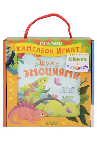 «Хамелеон Игнат. Книжка и 9 кубиков» — это подарочный набор для самых маленьких. Из красочной книжки-картонки про хамелеона Игната ребенок узнает, что такое радость, грусть, злость и другие эмоции. А из кубиков можно сложить шесть ярких картинок с разными эмоциями и потренироваться их определять. А еще это поможет развить внимание и мелкую моторику.