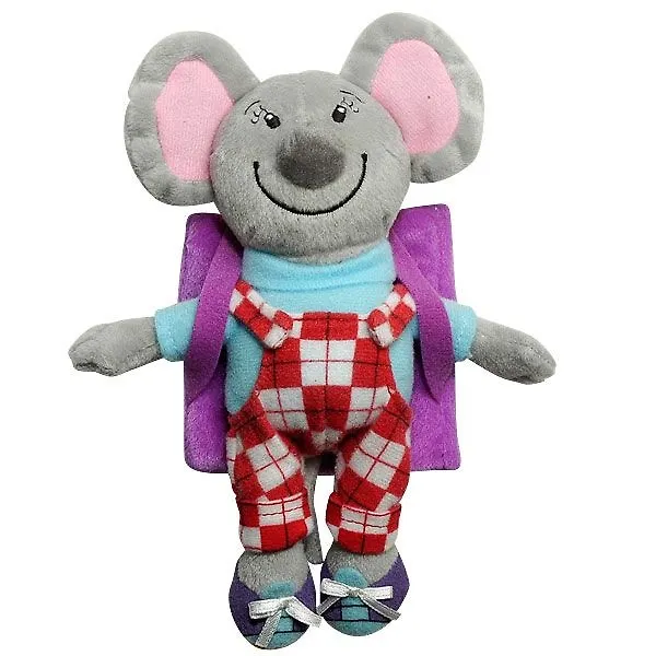 Мягкая игрушка Мышонок с рюкзачком, в который вложена книжка-малышка со сказкой Екатерины Каргановой Песенка мышонка. При нажатии на Мышонка, прозвучит весёлая песенка из мультфильма.