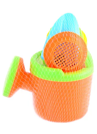 Песочный набор предназначен для игр в песочнице или на песчаном пляже. Занятия с песком способствуют развитию мелкой моторики, положительно влияют на сенсорное восприятие малыша. Ваш ребенок сможет воплотить любые фантазии и развить скульптурные способности. В набор входит: лейка,сито,3 лопатки. Набор упакован в сетку.