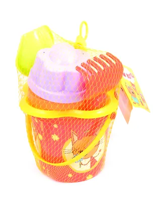 Песочный набор Три кота № 1 (ведро малое с наклейкой, ситечко-цветок, совок, грабельки, 2 формочки).