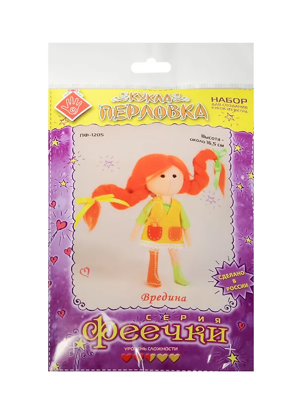 ПФ-1205 Набор для создания кукол из фетра Вредина (Феечки) (Кукла Перловка) (hand made) (выс. ок.16,5см) (упаковка)