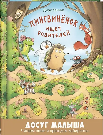 Однажды в дверь к ёжику постучался маленький, беззащитный пингвинёнок. Как он оказался в лесу и где его родители?.. Чтобы помочь пингвинёнку найти свою семью, малышу придется совершить увлекательное путешествие по запутанным лабиринтам, а заодно познакомиться с обитателями леса и зоопарка. В пути ему помогут красочные картинки и весёлые стихи. Книжка учит ориентироваться в пространстве, находить детали, концентрировать внимание.