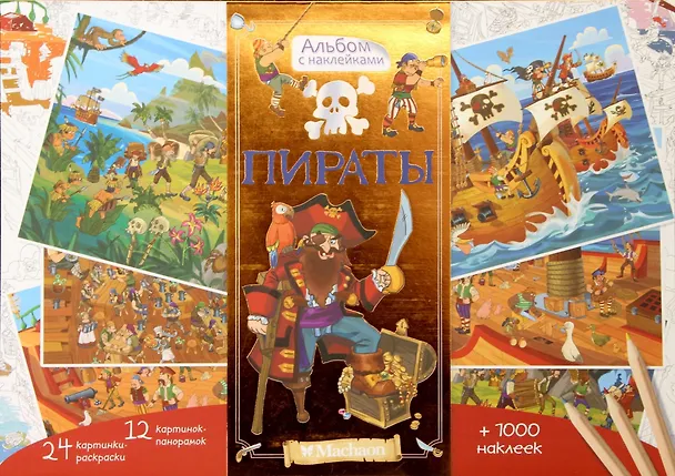Наклей стикеры по своему усмотрению и воссоздай на панорамках атмосферу пиратских будней! Можешь воспользоваться подсказками в конце книги. С помощью карандашей передай неповторимый колорит пиратской жизни! Ты только что вернулся из морского похода и хочешь, чтобы это приключение на пиратском судне надолго осталось в твоей памяти. Оформи панорамки и укрась готовыми картинками свою комнату, чтобы они напоминали тебе о морских разбойниках и о том, что ты - один из них.