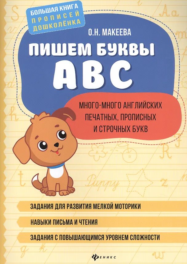 Большая книга прописей поможет ребёнку освоить навыки письма и чтения, познакомит с написанием печатных и прописных букв английского алфавита. Ребёнок укрепит координацию и мелкие мышцы кисти руки; письмо на бумаге станет более уверенным, точным. Задания ориентированы на детей старшего дошкольного возраста.
