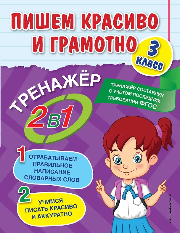 Тренажёр преследует две цели: научить третьеклассника писать и грамотно, и красиво. Для этого разработаны задания на повторение и запоминание словарных слов. Каждое из них, написанное каллиграфической прописью, нужно обвести. При использовании этой методики у ученика одновременно будет формироваться красивый разборчивый почерк и автоматическая грамотность. Уникальность этого тренажёра, созданного с учетом требований ФГОС начального общего образования, заключается в комбинировании заданий и оригинальной подаче материала.