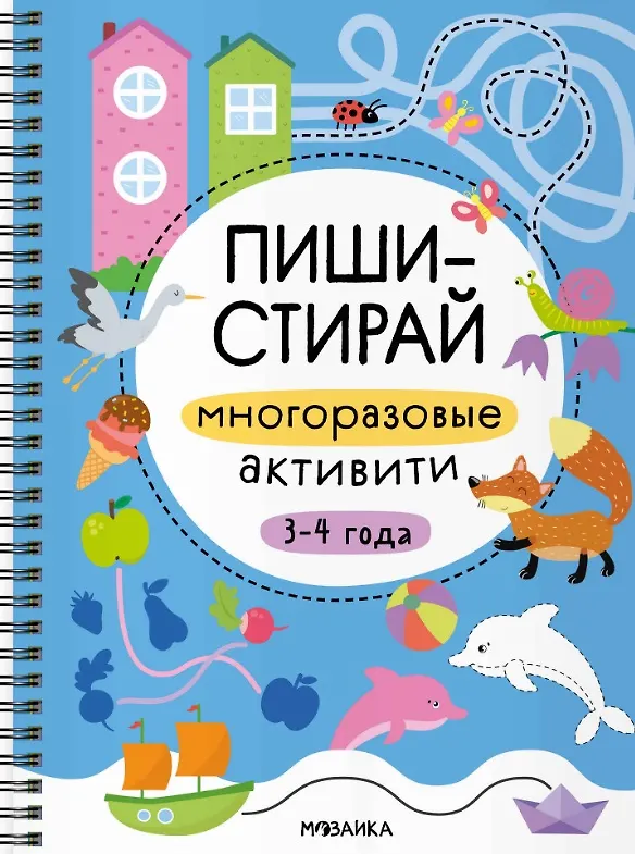 Книга «Многоразовые активити. 3-4 года» из серии «Пиши-стирай» — отличный помощник для развития и развлечения ребенка. Страницы в них ламинированные. Если захочется выполнить задание еще раз, достаточно протереть страничку тряпочкой — и можно творить снова! Главное, использовать маркеры на водной основе. Внутри книги собраны разнообразные задания в соответствии с возрастными возможностями ребенка, которые способствуют развитию логики, мышления, мелкой моторики, аккуратности.