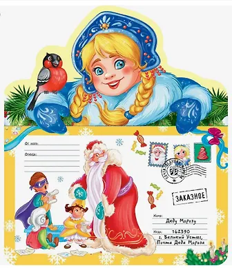 Письмо Деду Морозу. Снегурочка: конверт с наклейками и раскраской