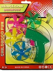 Отличный подарок малышу 2-3 лет, которому уже можно показать, как с ним играть, и объяснить, что нельзя стрелять в себя и других. Если это почему-то окажется сложно, попробуйте хотя бы продемонстрировать, что летающие "звездочки" при горизонтальном выстреле летают не так красиво.