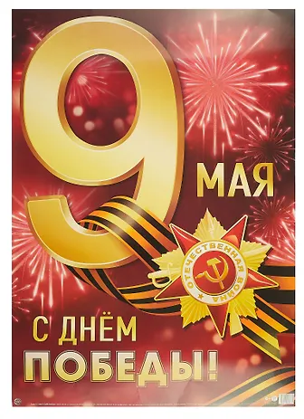Плакат А2 9 Мая. С Днем Победы! инд.уп., подвес