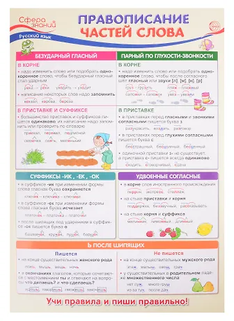 Плакат А3 "Правописание частей слова". Для занятий по русскому языку с учащимися 3-х классов общеобразовательных организаций